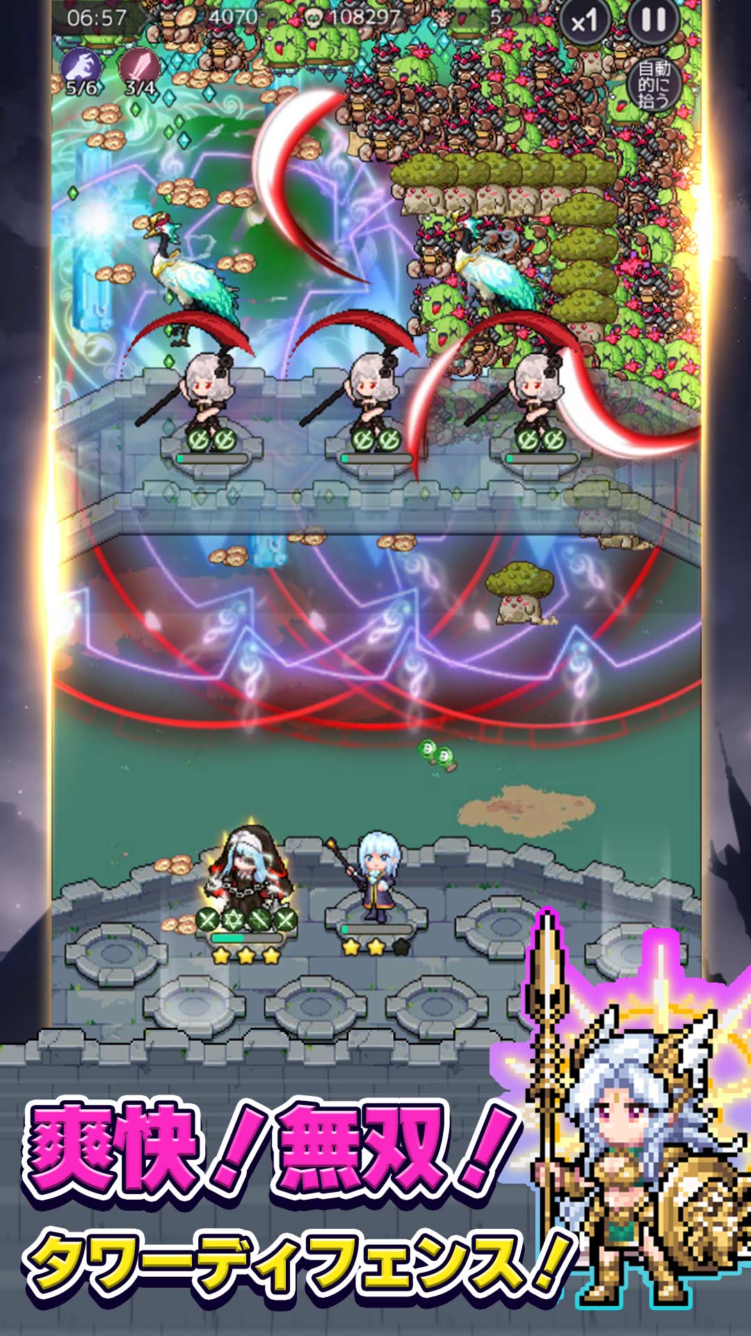 『ドット魔女』は、個性豊かな魔女たちを指揮し、迫りくる敵の波状攻撃から拠点を防衛するタワーディフェンスゲームです。プレイヤーは指揮官として戦場に立ち、魔女たちを召喚・育成しながら、押し寄せる敵を撃退していきます。